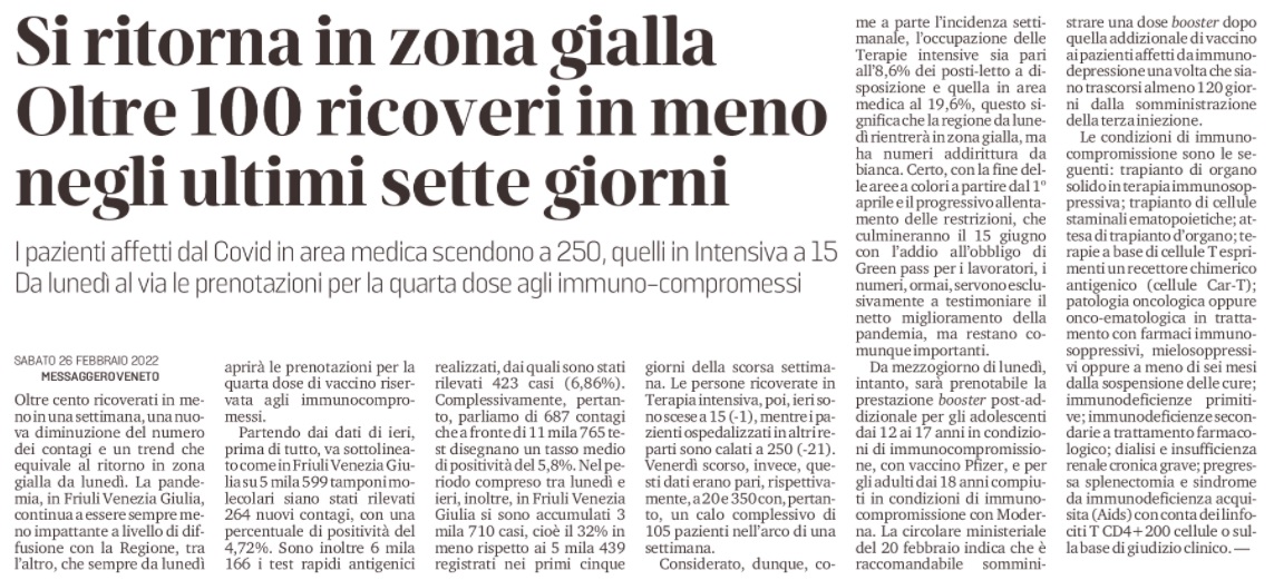 Da lunedì al via le prenotazioni per la quarta dose agli immuno-compromessi clicca qui